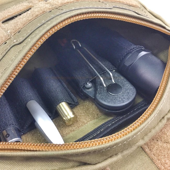 Un organisateur simple pour les surfaces en velcro avec deux boucles élastiques de 40mm pour attacher l'équipement. Dimensions : 50 x 80mm. Fabriqué avec des matériaux durables incluant du Nylon ComSpec 500D, un crochet ComSpec et un élastique ComSpec. Pa