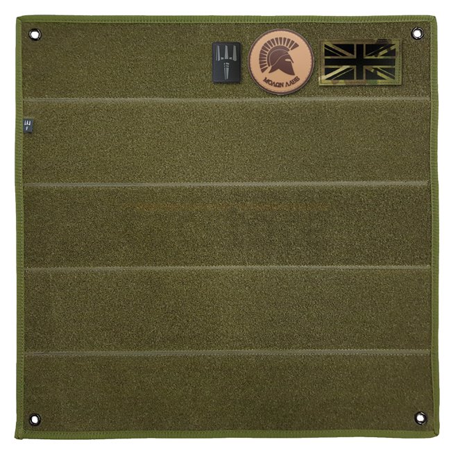 Un panneau de velcro de qualité pour la présentation de patches, avec des œillets métalliques sur les coins pour la stabilité. La livraison n'inclut pas les patches. Dimensions : 50x50 cm.