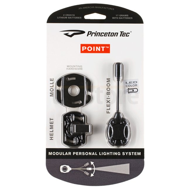 Lampe frontale Princeton Tec Point MPLS compacte et légère, blanche et noire, avec une luminosité de 10 lumens, une autonomie de 36 heures et une portée de 35 mètres. Boîtier IPX4, résistance à une chute de 1 mètre, alimentée par 2 piles CR2016. Idéale po