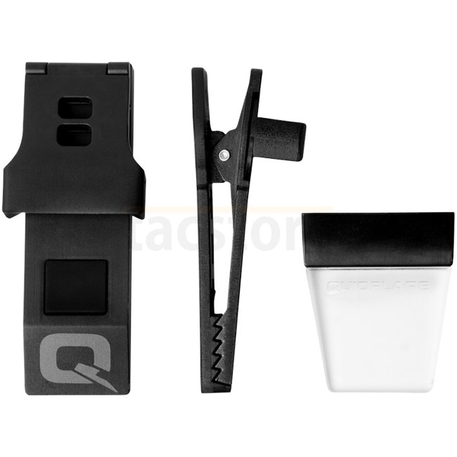 Présentation de QuiqLite X2 en boîtier en aluminium rechargeable USB - Rouge / Blanc. Les caractéristiques incluent un nouveau boîtier en aluminium, rechargeable par USB, 4 modes avec différents lumens, finition anodisée anti-reflet, bras LED réglable, bo