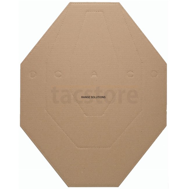 Cible IPSC standard marron pour tir dynamique et entraînement Airsoft. Carton rigide offrant des zones de score A/C/D nettes pour des exercices réalistes au stand.