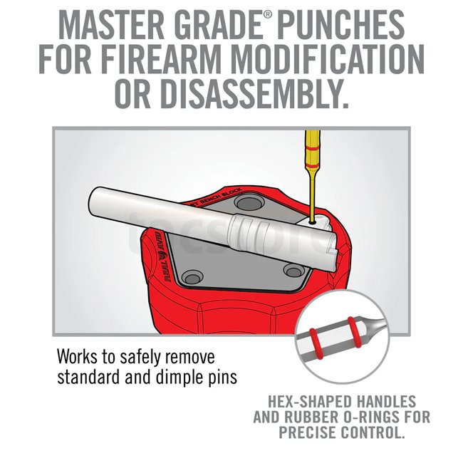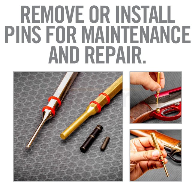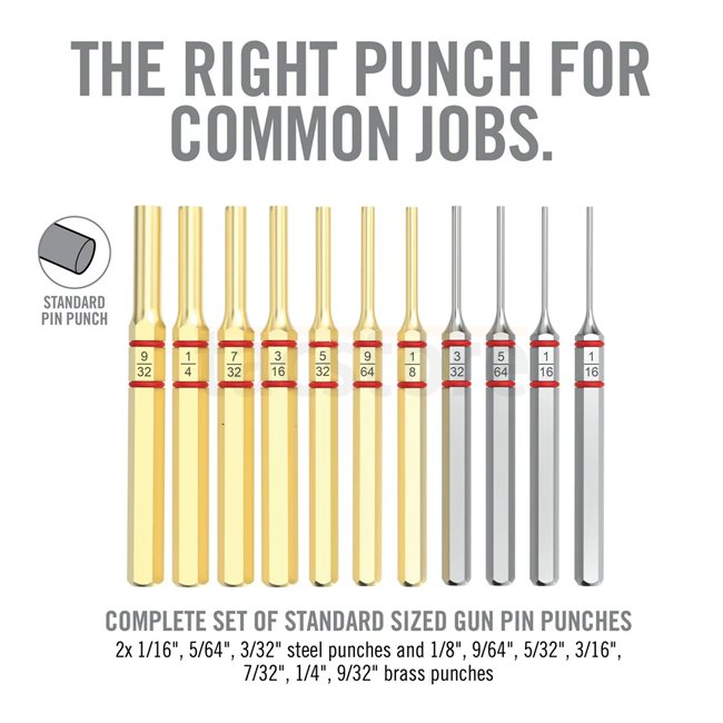 Ce set comprend 11 chasse-goupilles en acier durci et laiton, toutes nickelées pour résister à la corrosion. Les manches hexagonaux et les joints toriques en caoutchouc augmentent le contrôle, empêchent le roulis et assurent des frappes précises—parfait pour préserver les finitions et pour un démontage soigné.