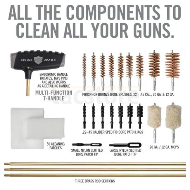 Real Avid Gun Boss Pro Universal Cleaning Kit : Trousse de nettoyage multicalibre haut de gamme dans un étui pratiquement indestructible. Professionnel, spécialisé et organisé pour les tireurs modernes.