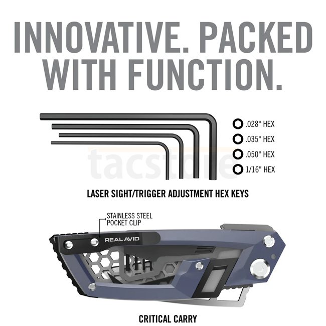 - Quatre clés hexagonales (.028", .035", .050", 1/16") pour régler visée laser et détente