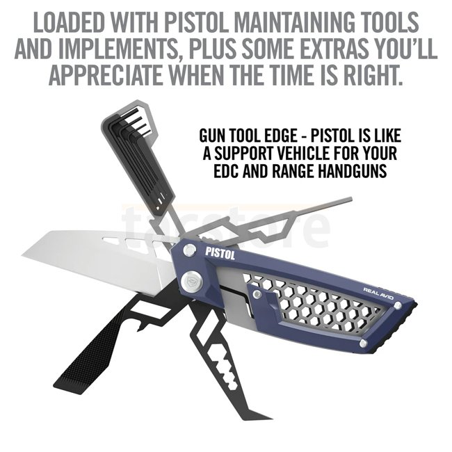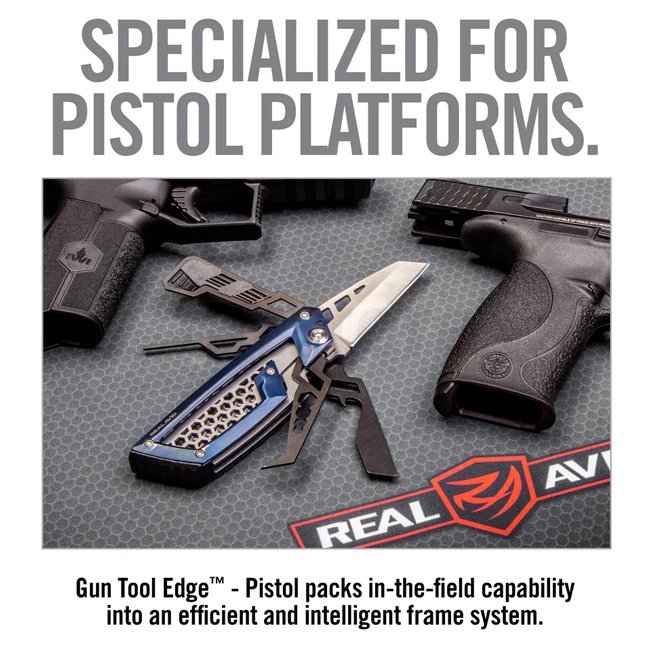 Le Gun Tool Edge – Pistol associe une lame Wharncliffe de 6,6 cm à des outils spécifiquement conçus pour pistolets. Sa construction en acier inoxydable, finition titane et oxyde noir, le rend robuste et toujours prêt pour les réglages sur le terrain.