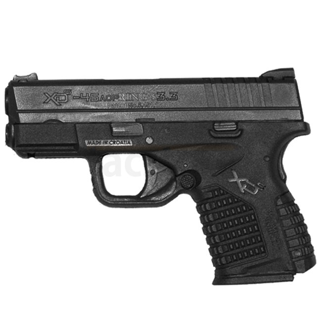 Bagues Armes Bleues : Pistolet Springfield XDS 3.3 - Noir - réplique d'entraînement de haute qualité pour la police et l'armée. Fabriqué en polyuréthane à haute impact avec renforcement en acier pour la durabilité et une manipulation réaliste.