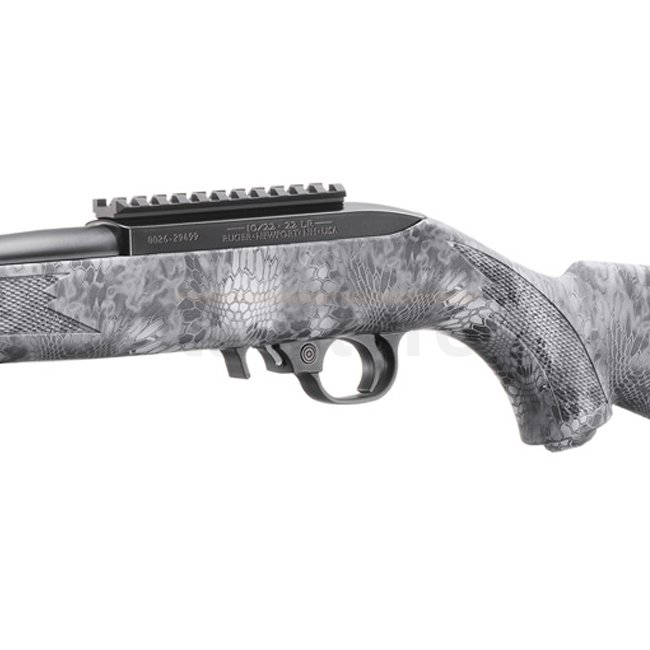 La Ruger 10/22 Carbine est une carabine semi-automatique emblématique en calibre .22 LR, reconnue pour sa fiabilité, sa modularité et sa facilité d'utilisation. Dotée d'un design compact avec une crosse synthétique Kryptek Typhon Camo distinctive et un canon forgé à froid, elle est idéale pour le tir récréatif ou l'entraînement.