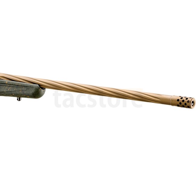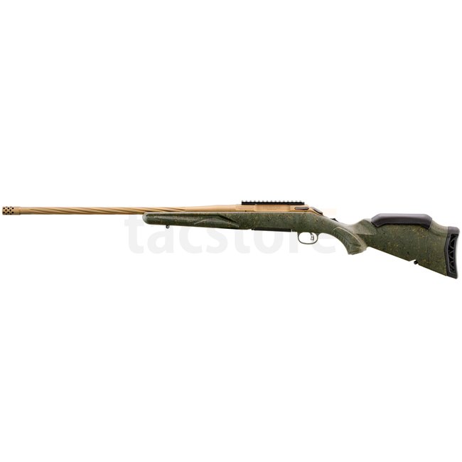 Le Ruger Modèle 46943 en .30-06 Springfield combine un canon spiralé de 559mm, un revêtement Cerakote® Burnt Bronze et une crosse synthétique Green Splatter Gen II. La longueur de traction est réglable de 305mm à 349mm pour s’adapter à différents profils de tireurs.
