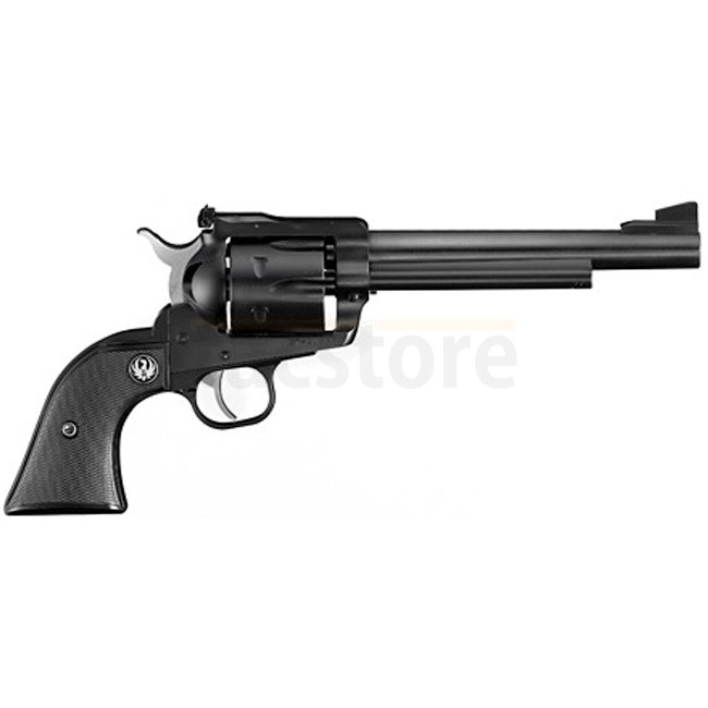 Le Ruger New Model Blackhawk .357 Magnum associe un design western classique à des performances de tir modernes. Les plaquettes en caoutchouc dur noir quadrillé offrent une prise en main naturelle et un excellent contrôle.