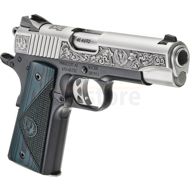 Le Ruger SR1911® Commander-Style - Modèle 16704 est un pistolet en .45 Auto entièrement conçu en acier inoxydable brossé, offrant une excellente durabilité et une gestion du recul améliorée. Doté d’une visée Novak® à 3 points, d’une détente squelettée en simple action et de plaquettes en bois, il conjugue les atouts de l’ergonomie 1911 à des éléments modernes. La sûreté de poignée allongée et les pièces usinées avec précision garantissent une performance constante.
