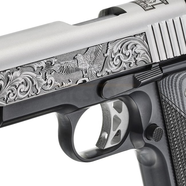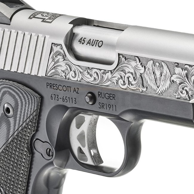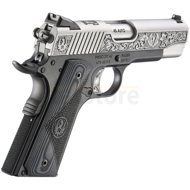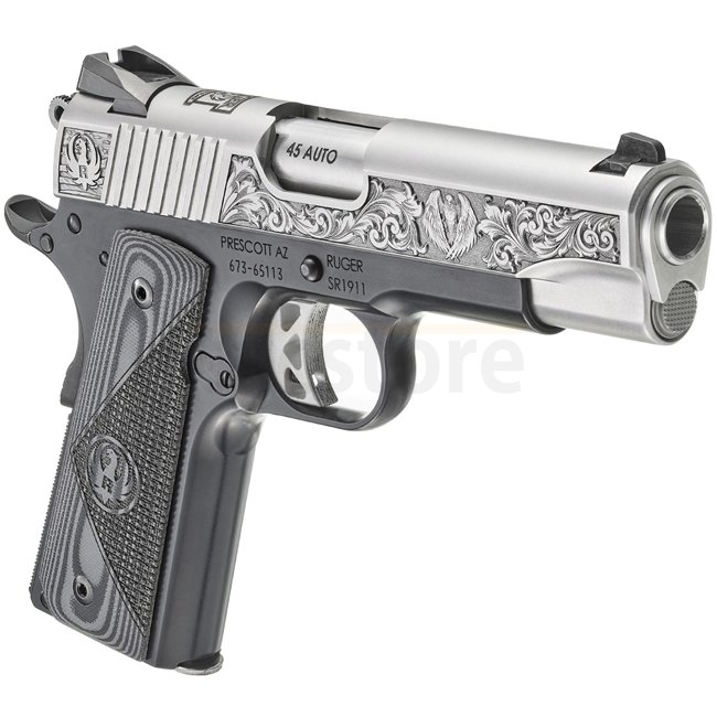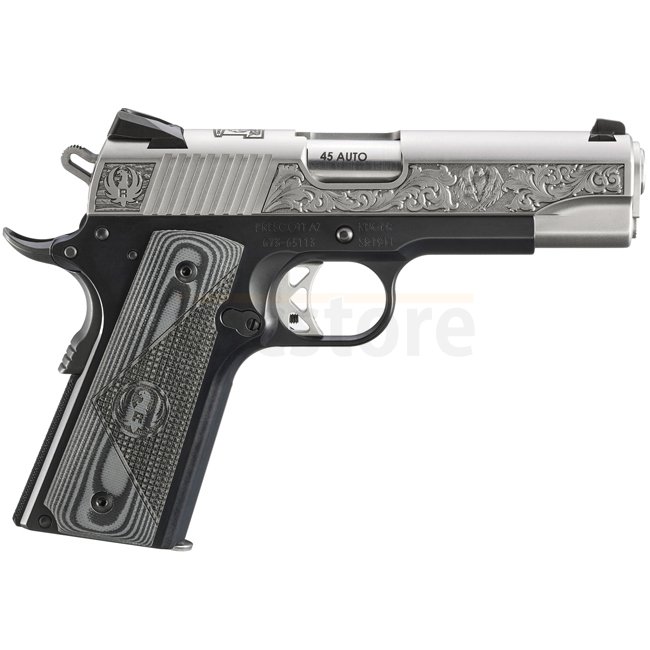 Le Ruger SR1911® Commander-Style - Modèle 16705 associe esthétique classique et construction moderne. Son châssis en aluminium anodisé noir est combiné à une culasse en acier inoxydable brossé, offrant un style contrasté distinctif. Chambré en .45 Auto, ce modèle léger dispose d’une visée Novak® à 3 points, d’une détente squelettée simple action et de plaquettes caoutchoutées pour un confort et une fiabilité accrus.