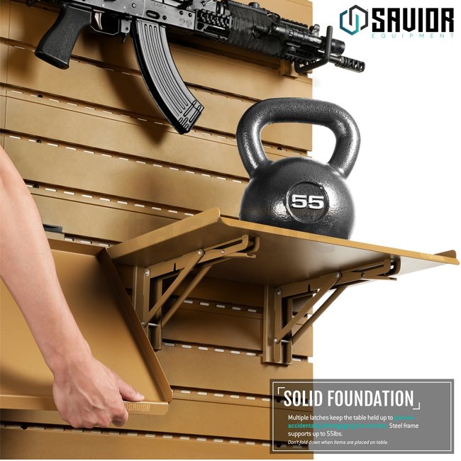 Savior Equipment Wall Rack System Folding Workbench - RAL 8000