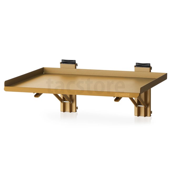 Système de support mural d'équipement Savior - Banc de travail pliant - RAL 8000 - Banc de travail polyvalent et pliable pour système de rail mural modulaire. Solution robuste et peu encombrante pour les espaces de travail.