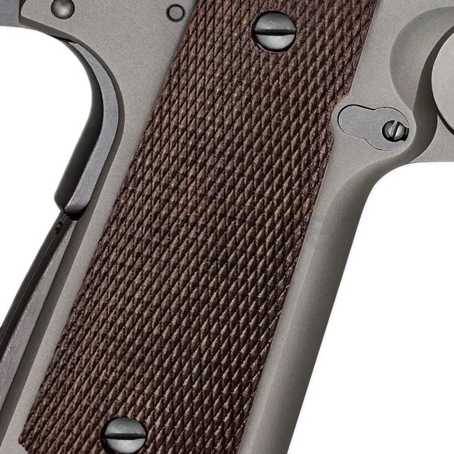 Abzug court de style militaire, mainspring housing arrondi et chien à queue palmée pour une prise en main classique.