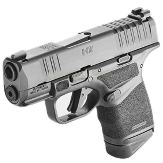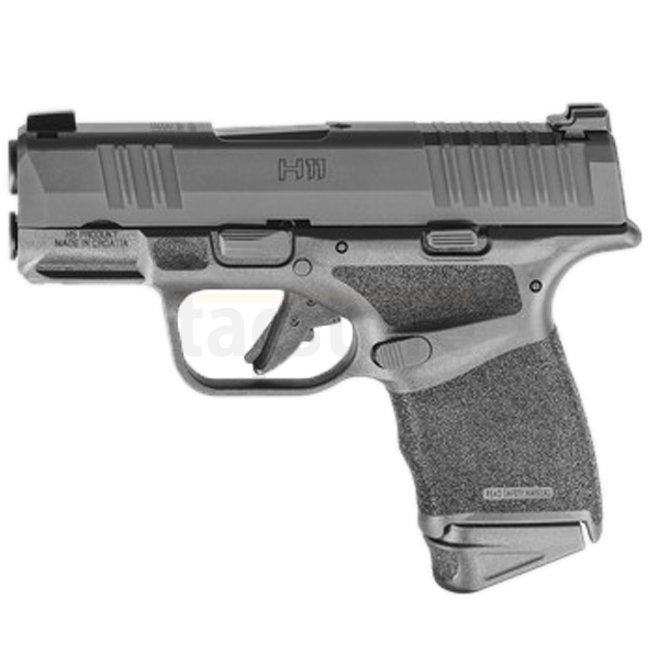 Le Springfield Armory HS H11, connu sous le nom de Hellcat® aux États-Unis, est un pistolet micro-compact à percuteur conçu pour le port dissimulé. Il est doté d'un canon martelé à froid et d'une glissière forgée, tous deux traités avec une finition protectrice Melonite pour une durabilité accrue. Le design breveté du chargeur offre une capacité impressionnante de 11+1 cartouches avec le chargeur affleurant et de 13+1 cartouches avec le chargeur étendu. La texture Adaptive Grip assure un contrôle exceptionnel lors des tirs rapides, et la glissière comprend des stries avant et arrière pour une manipulation facilitée. Équipé d'un guidon en fibre optique et d'une hausse arrière en U encastrée, le HS H11 intègre également plusieurs dispositifs de sécurité, y compris une sécurité de détente, une sécurité de percuteur et un indicateur de chambre chargée. Le bouton de déverrouillage du chargeur réversible convient aux tireurs droitiers et gauchers. Son design léger, sa capacité substantielle et sa fiabilité font du HS H11 un choix idéal pour le port dissimulé.