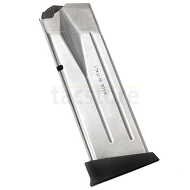 Ce Magazine 9×19 mm 13 coups est conçu pour le pistolet STR‑9C. Il comprend un corps en acier nickelé et une semelle robuste en polymère noir. Une option avec extension pour le petit doigt est disponible pour une meilleure prise en main.