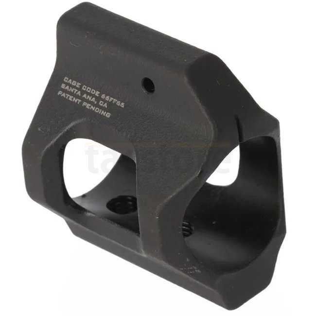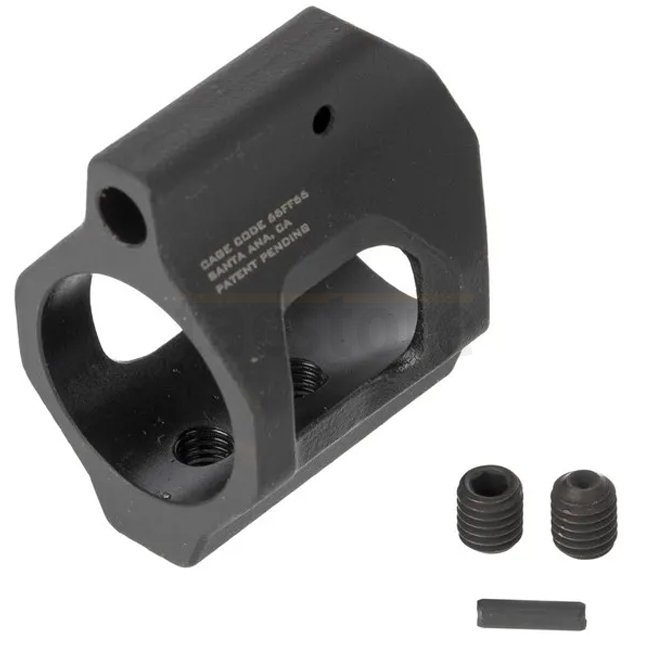 Bloc de gaz en acier profil bas amélioré pour AR15 & AR10. Acier, 30x36mm, 46g. Convient au journal de bloc de gaz de .750”. Comprend 2 vis de blocage et 1 goupille à ressort.