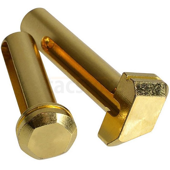 Améliorez votre AR-15 avec ces broches de pivot/démontage Enhanced de Strike Industries en or. Fabriquées en acier, légères à 16g, et facilement installables/désassemblables sans poinçon. Compatible avec les fusils AR-15/AR-10/M16/M4.