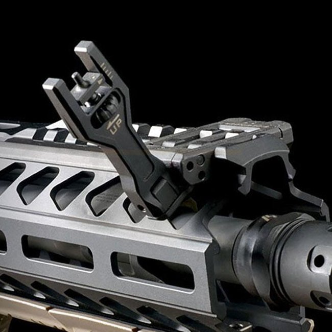 Strike Industries Sidewinder II BUIS - Noir : Système de montage à profil bas avec décalage de 45 degrés. Réglages de la dérive et de l'élévation sans outil. Réversible pour une utilisation à gauche ou à droite. Hauteur de 1,42" pour un co-témoignage infé