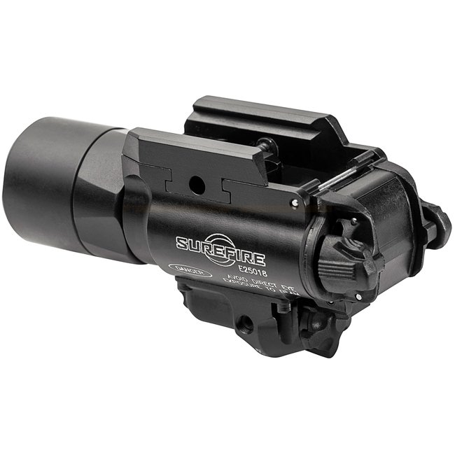 La SureFire X400 Ultra est une lampe d'arme haute performance conçue pour les pistolets et fusils équipés de rails. Elle combine une puissante LED à lumière blanche avec un viseur laser intégré, améliorant l'identification et l'acquisition des cibles dans diverses conditions d'éclairage.
