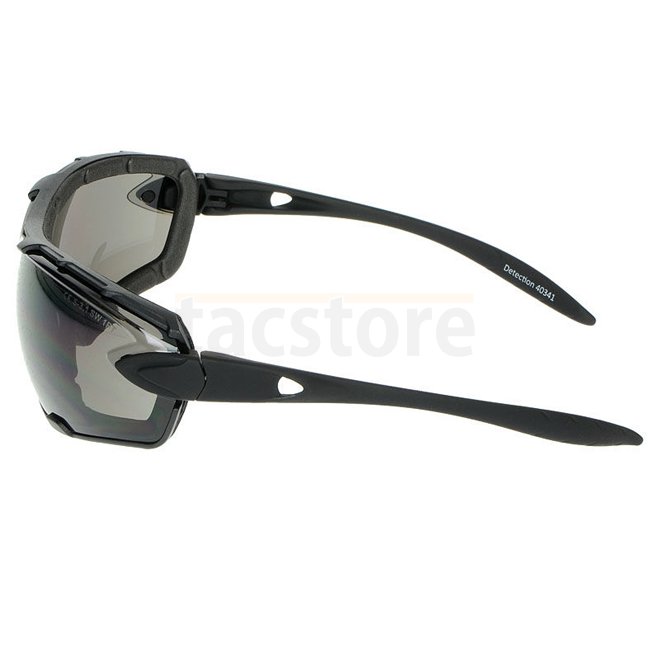 SwissEye Detection - Noir : Lentille en polycarbonate avec revêtement antifog/antiscratch, branches avec réglage de l'angle d'inclinaison, protection UV à 100%, lentilles claires de rechange, bandeau et protection en mousse, sac en microfibre, certifié EN