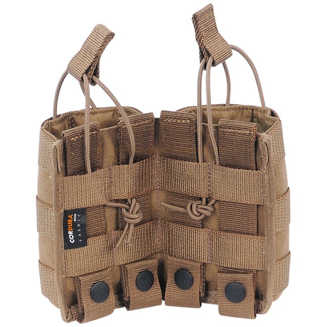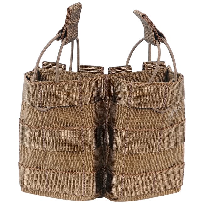 Pochette Tasmanian Tiger 2 pour 2 chargeurs M4 - Coyote. Fermeture élastique, 2x chargeurs AR15/M4/M16, 3 bandes MOLLE avant.