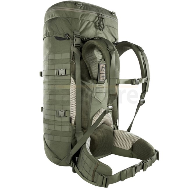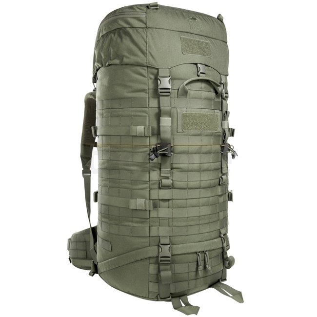 Tasmanian Tiger Base Pack 75 - Olive : Grand sac à dos de mission avec options d'expansion modulaires. Offre un volume de 75L, extensible à 90L. Système de portage V2, cavité de tête préformée, compartiments divisés et d'autres fonctionnalités pour une ut