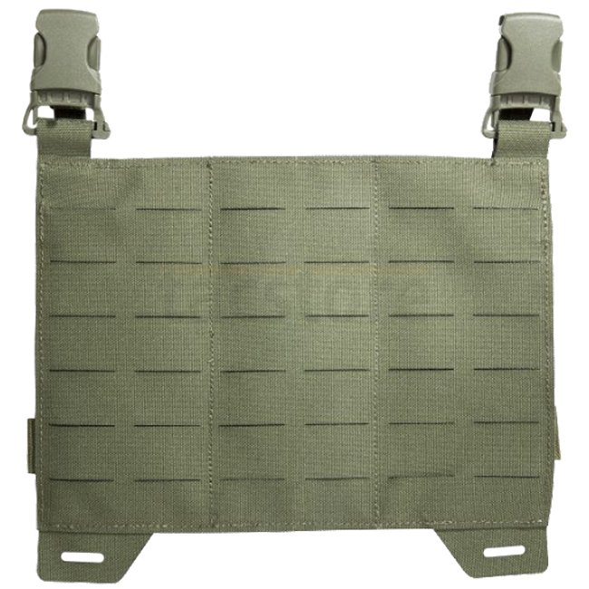 Panneau porteur léger avec 4 pochettes de 3 tailles pour panneaux SAPI (30 x 25 cm). Fabriqué en CORDURA européen conforme aux normes de la Bundeswehr allemande. Comprend un système MOLLE découpé au laser, une fixation latérale élastique ajustable, un pan