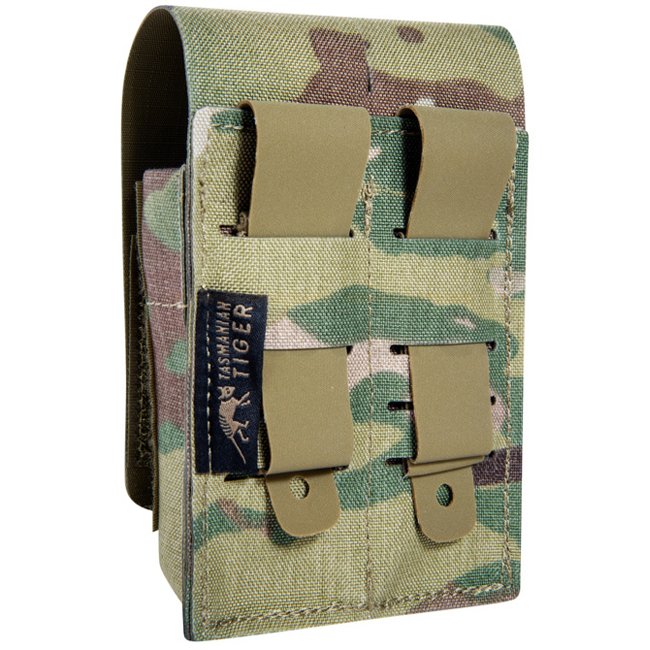 Poche double pour chargeurs de pistolet Tasmanian Tiger DBL MK III - Multicam, poche polyvalente pour chargeurs de pistolet double empilés fabriquée en tissu CORDURA® 500D durable, ne pèse que 50g et mesure 12x5x2.5cm.