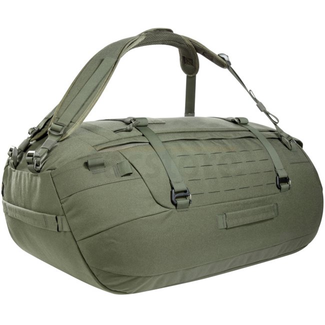 Sac d'équipement robuste en Cordura 700d avec un volume de 65 litres, des bretelles amovibles, des curseurs de fermeture éclair verrouillables et un fond rembourré. Avec système MOLLE à l'extérieur et MOLLE découpé au laser.