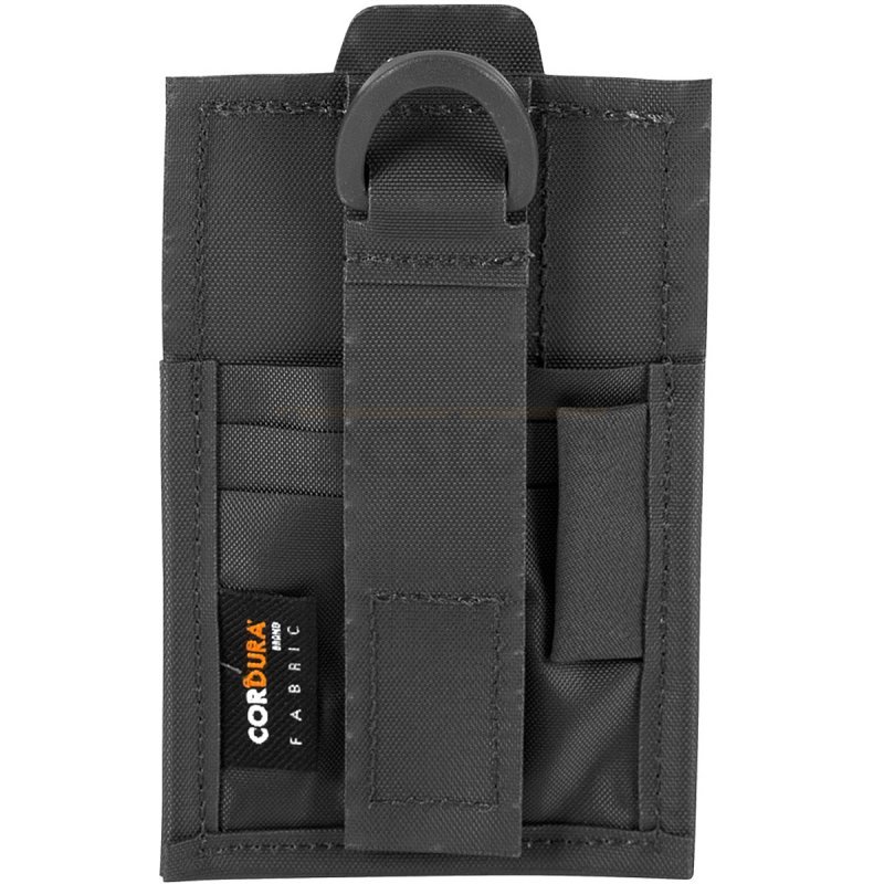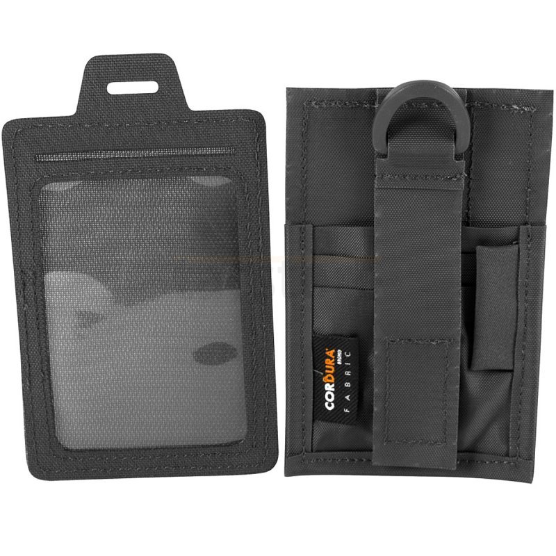 Coque robuste combinée pour carte d'identité, cartes de crédit et stylo. La coque d'identité peut être retirée et utilisée comme un écusson.