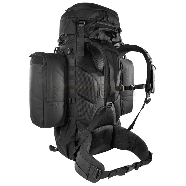 Sac robuste Tasmanian Tiger Mil OPS 80 & 24 - Noir avec système de portage ajustable V2 pour charges lourdes. Grand compartiment, poches latérales, système de laçage et porte-casque. Système MOLLE sur le devant et les côtés.