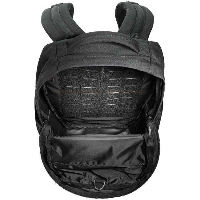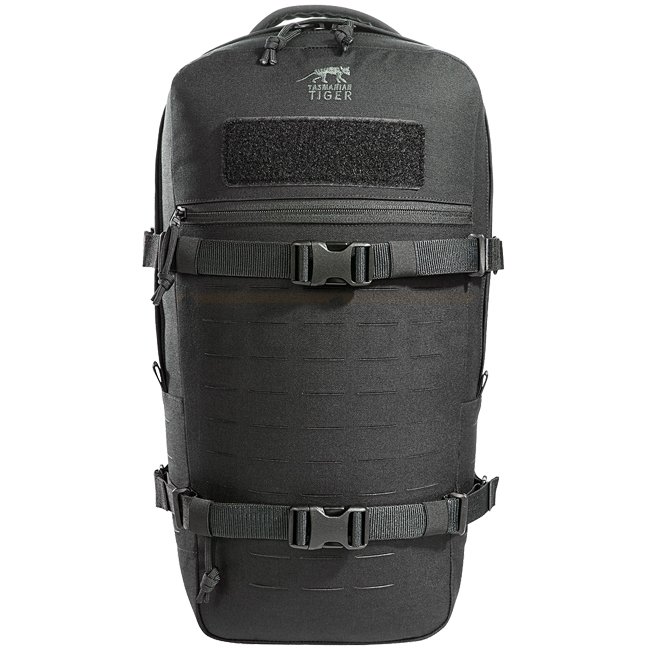 Sac à dos Tasmanian Tiger Modular Daypack L - Noir : Sac à dos de 18L avec panneaux à crochets MOLLE, poche avant à fermeture éclair plate et MOLLE découpé au laser pour la personnalisation de l'équipement.