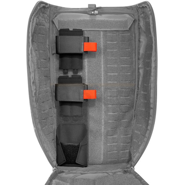 Ensemble de porte-armes individuellement combinable pour diverses armes avec fixations à scratch et MOLLE et entonnoir de protection du museau ajustable en Hypalon. Convient pour les sacs et les sacs à dos avec de grandes surfaces à scratch et MOLLE.