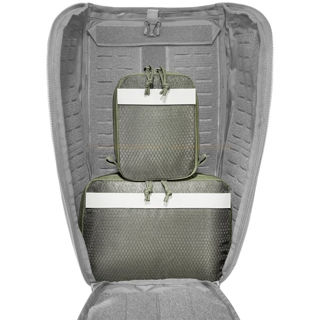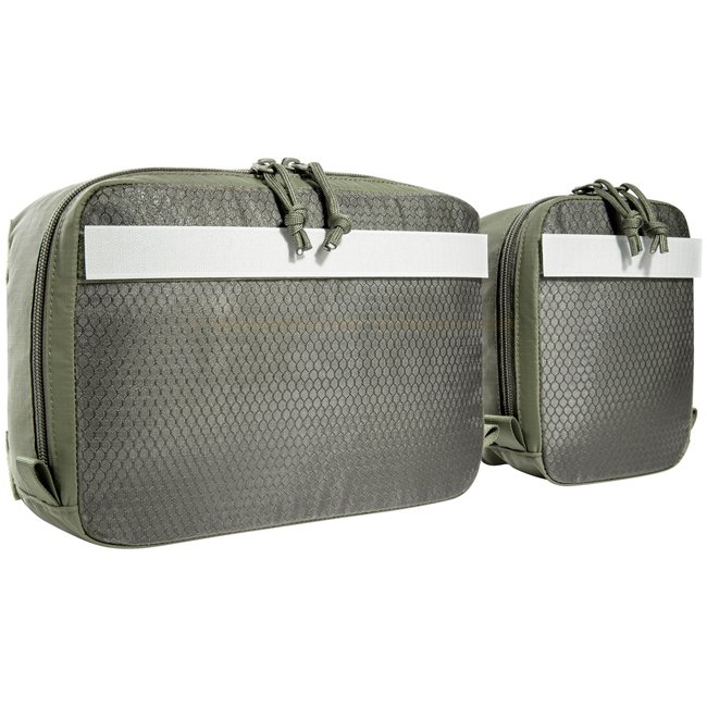 Ensemble de pochettes polyvalentes robustes Tasmanian Tiger en couleur olive pour fixation par bande auto-agrippante. Comprend deux sacs avec couvercles en maille transparente et bandes auto-agrippantes. Polyvalent, léger et facile à utiliser pour des sac