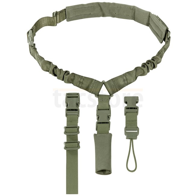 Bretelle unique rembourrée avec diverses options de fixation. Cordon élastique réglable en longueur permettant à la bretelle d'être plus serrée tout en offrant plus de liberté lors de l'épaulement de votre arme. Boucles à déclic latérales pour un largage