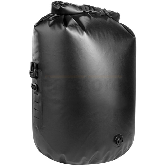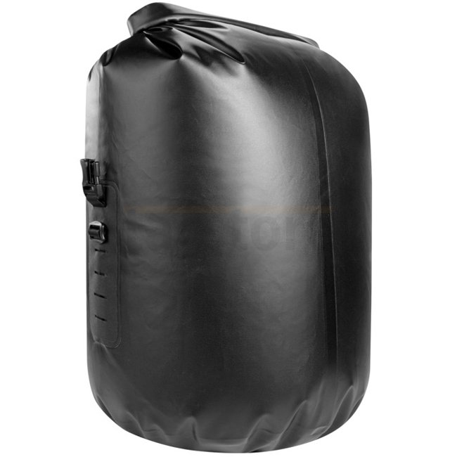 Sac de rangement robuste et étanche avec fermeture à enroulement et valve pour la compression. Des éléments soudés découpés au laser et dotés de fentes permettent de fixer la fermeture à enroulement et de fixer le sac, par ex. dans les véhicules et les bateaux. Le matériau utilisé est sans PVC et possède une finition DWR sans PFC/PFAS.