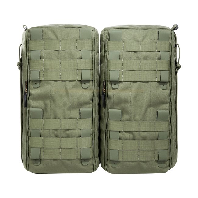 Set de Poches Tac Tasmanian Tiger pratique - Olive, parfait pour ajouter un espace de rangement supplémentaire à votre sac à dos. Offre un volume de 12 litres, un porte-bouteille d'eau, une compatibilité avec les systèmes d'hydratation, et plus encore. Id