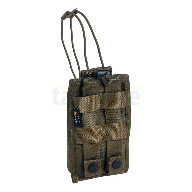Compact et polyvalent Tasmanian Tiger Tac Pouch 3 Radio - Olive, comprenant une boucle élastique ajustable, un système MOLLE et un matériau Cordura 700D. Parfait pour transporter de petites radios.