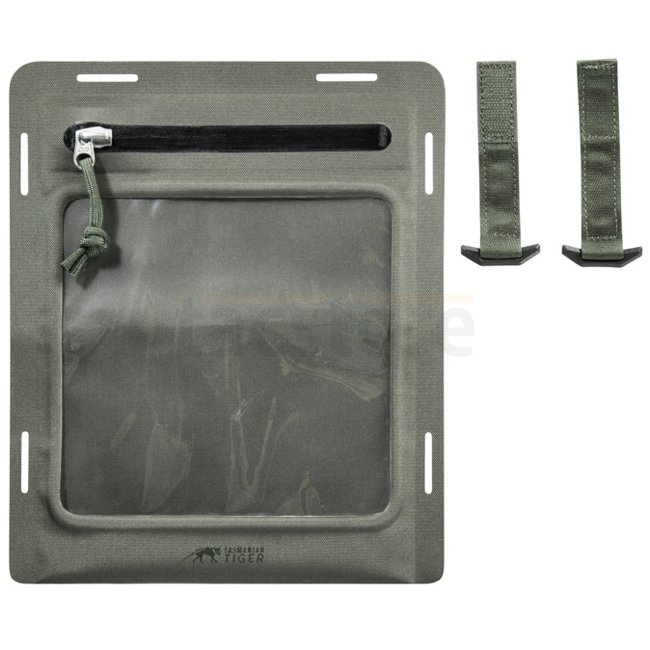 Étui pour tablette résistant à l'eau avec fenêtre de visualisation compatible avec les écrans tactiles. Adaptateur pour montage sur surfaces Molle-velcro inclus.