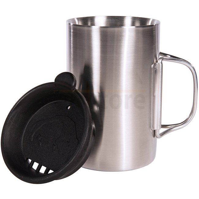 La tasse isotherme se compose d'acier inoxydable 18/8 à double paroi et est équipée d'une poignée rabattable et d'une échelle de volume à l'intérieur. Le couvercle offre une isolation supplémentaire pour la boisson chaude ou froide.