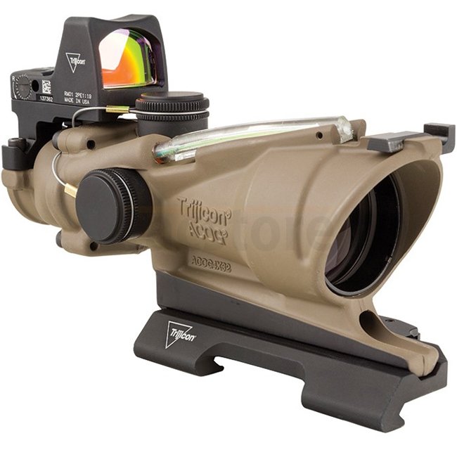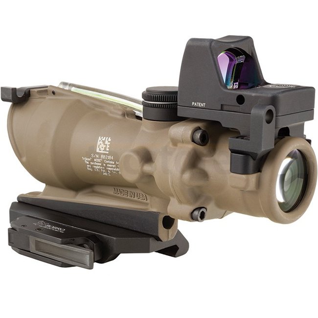 Conçu pour l’usage militaire et professionnel, le Trijicon ACOG ECOS 4×32 offre un grossissement fixe de 4× avec un réticule en croix vert à double illumination, alimenté par fibre optique et tritium. Le pack ECOS inclut un Trijicon RMR Type 2 Red Dot (3.25 MOA) monté au-dessus, permettant une transition rapide pour le tir rapproché. Son boîtier en aluminium forgé 7075-T6, ses organes de visée de secours intégrés et sa construction étanche garantissent une fiabilité maximale en conditions extrêmes.