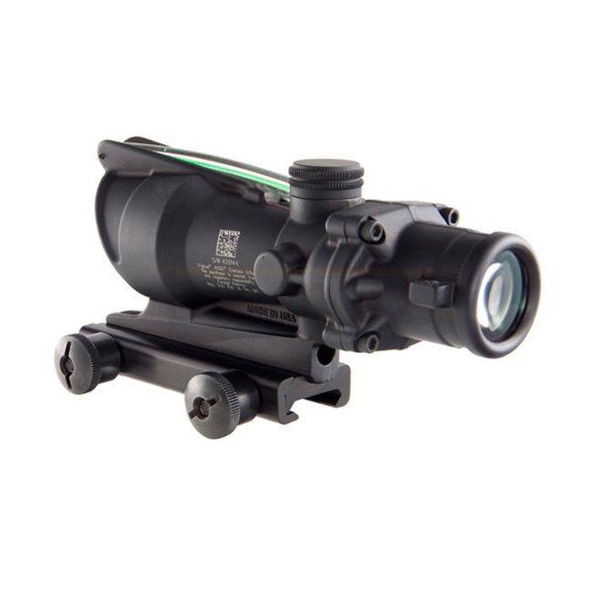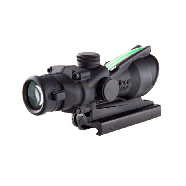 Le viseur Trijicon TA31-CH-G 4x32 ACOG avec réticule en croix vert .223 offre un réticule à double illumination et un réticule de mesure pour la compensation de chute de balle jusqu'à 600 mètres. Parfait pour toutes les conditions de lumière !
