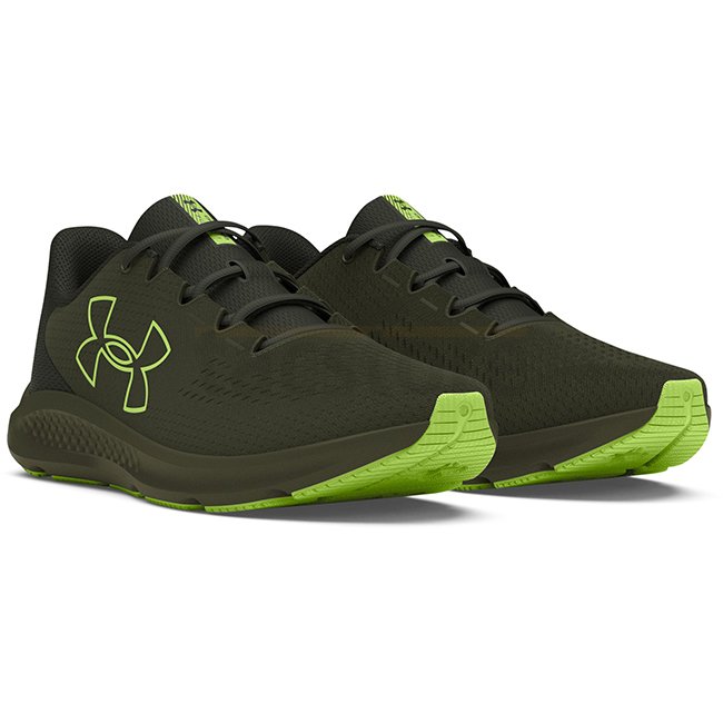 Under Armour Mens Charged Pursuit 3 Big Logo Running Shoes - Olive / Baroque Green / Morph Green - 14