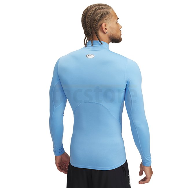 Under Armour Mens ColdGear Compression Mock - Carolina Blue / White / White - L