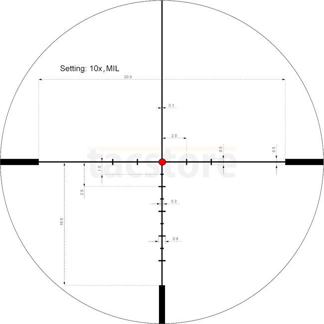 Le Continental X10 offre un zoom 1–10× avec un mode 1× réel pour visée à deux yeux ouverts. Le réticule VCO-7MIL en deuxième plan focal avec fibre et 11 niveaux d’illumination reste visible en plein jour. Les optiques en verre Schott HT, LaREE & VePRO FMC ED assurent plus de 93 % de transmission lumineuse, offrant des images nettes et lumineuses.