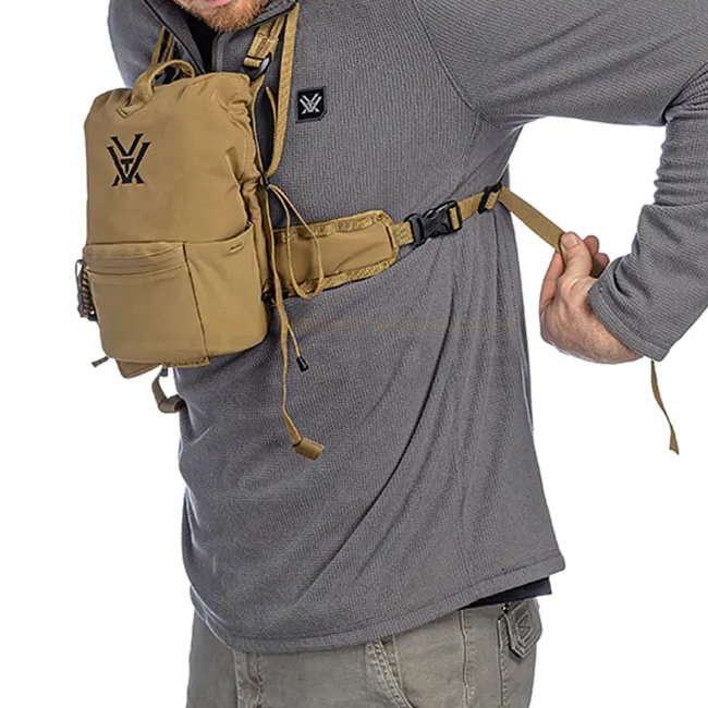 Harnais Vortex Optics GlassPak Pro - Grand. Harnais de jumelles pratique pour une utilisation mains libres. Dimensions compactes de 229 x 185 x 109 mm. Ne pèse que 482 g pour un transport facile.