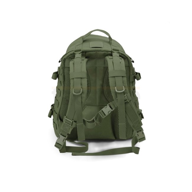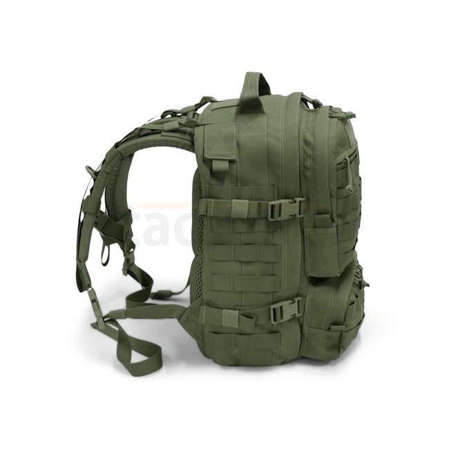 Warrior Elite Ops Pegasus Sac - Olive : Sac à dos tactique compact avec ouverture "Clamshell", support lombaire rembourré, plusieurs compartiments et manchon d'hydratation. Parfait pour un accès rapide aux articles essentiels de la mission.
