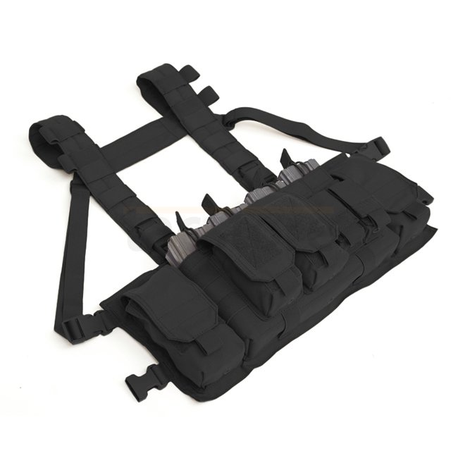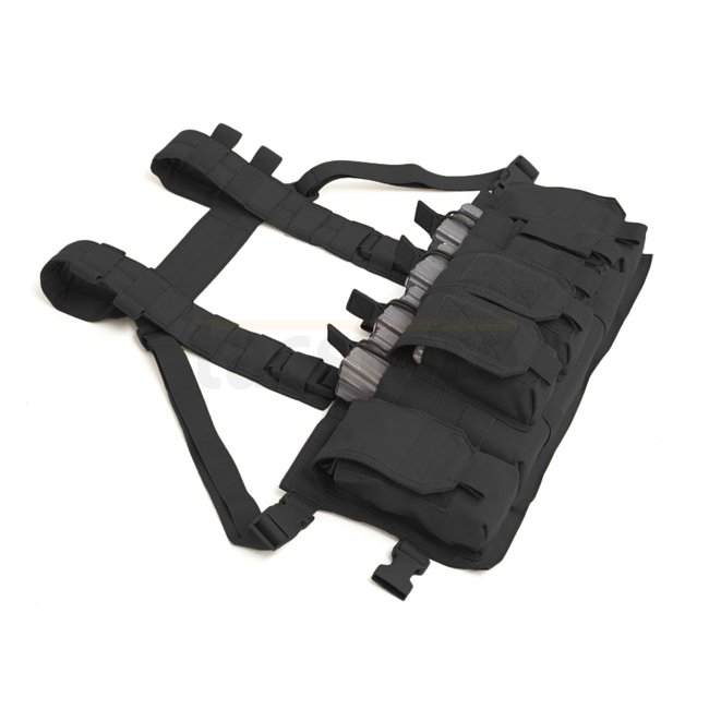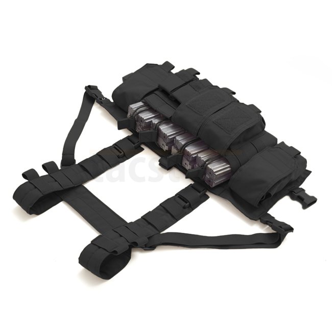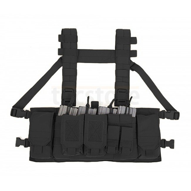 Le Warrior Falcon Chest Rig - Noir est un gilet de poitrine compact et polyvalent conçu pour un accès rapide et une flexibilité. Peut contenir 8 x magazines, y compris de style M4 et AK. Comporte 4 poches utilitaires, incluant un emplacement pour les radi