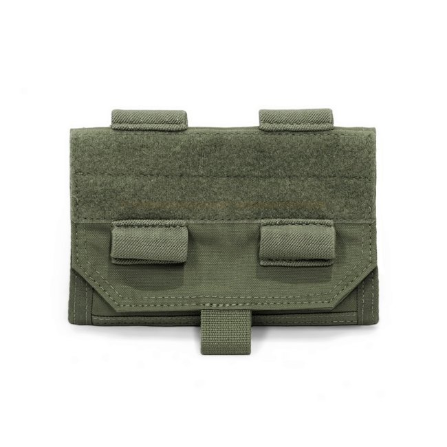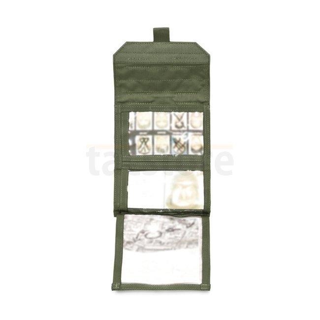 Elle dispose également d’un petit compartiment zippé pour ranger des piles de rechange, des rapporteurs et des stylos. À l’extérieur, une surface en Velcro permet d’attacher des marqueurs d’identification et quatre boucles élastiques peuvent accueillir des stylos ou des bâtons lumineux. La pochette se fixe via le système MOLLE et nécessite quatre rangées horizontales.